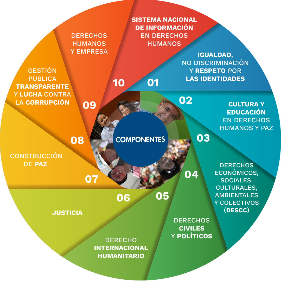 El objetivo del Plan Nacional de Acción de Derechos Humanos (PNADDHH) es el de garantizar la promoción, protección y goce efectivo de los derechos humanos, el fortalecimiento de las instituciones encargadas de trabajar temas relacionados con los derechos humanos a través de estrategias que impulsen y desarrollen las diferentes políticas públicas existentes y necesarias en esta materia, así como el cumplimiento de los diferentes instrumentos internacionales ratificados por Colombia y las recomendaciones del Sistema Internacional de los derechos humanos.